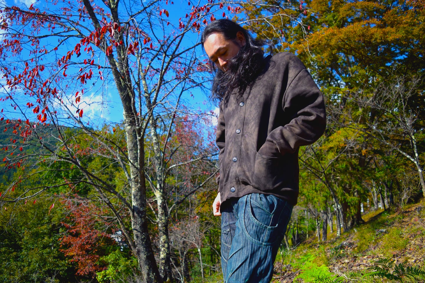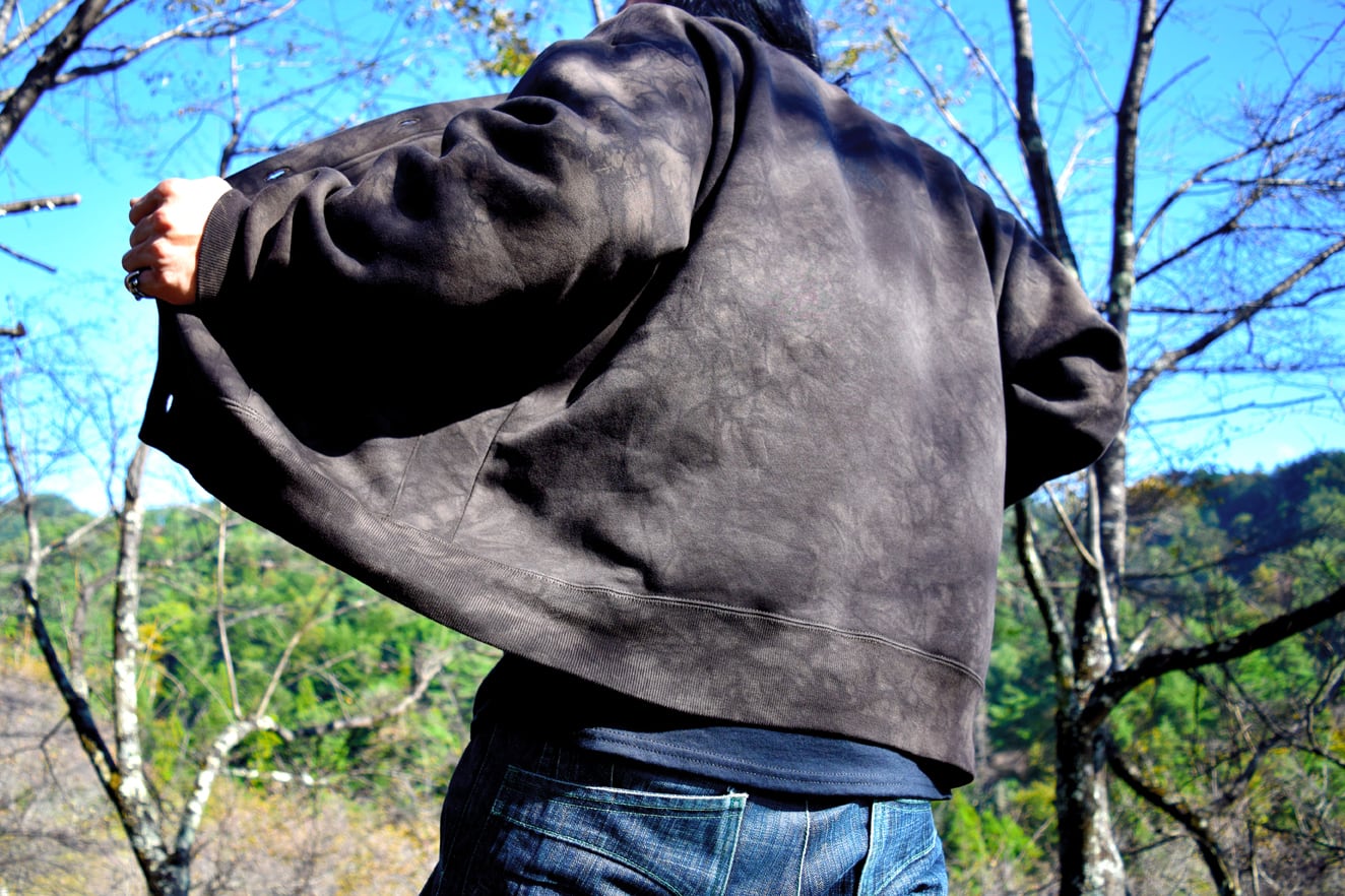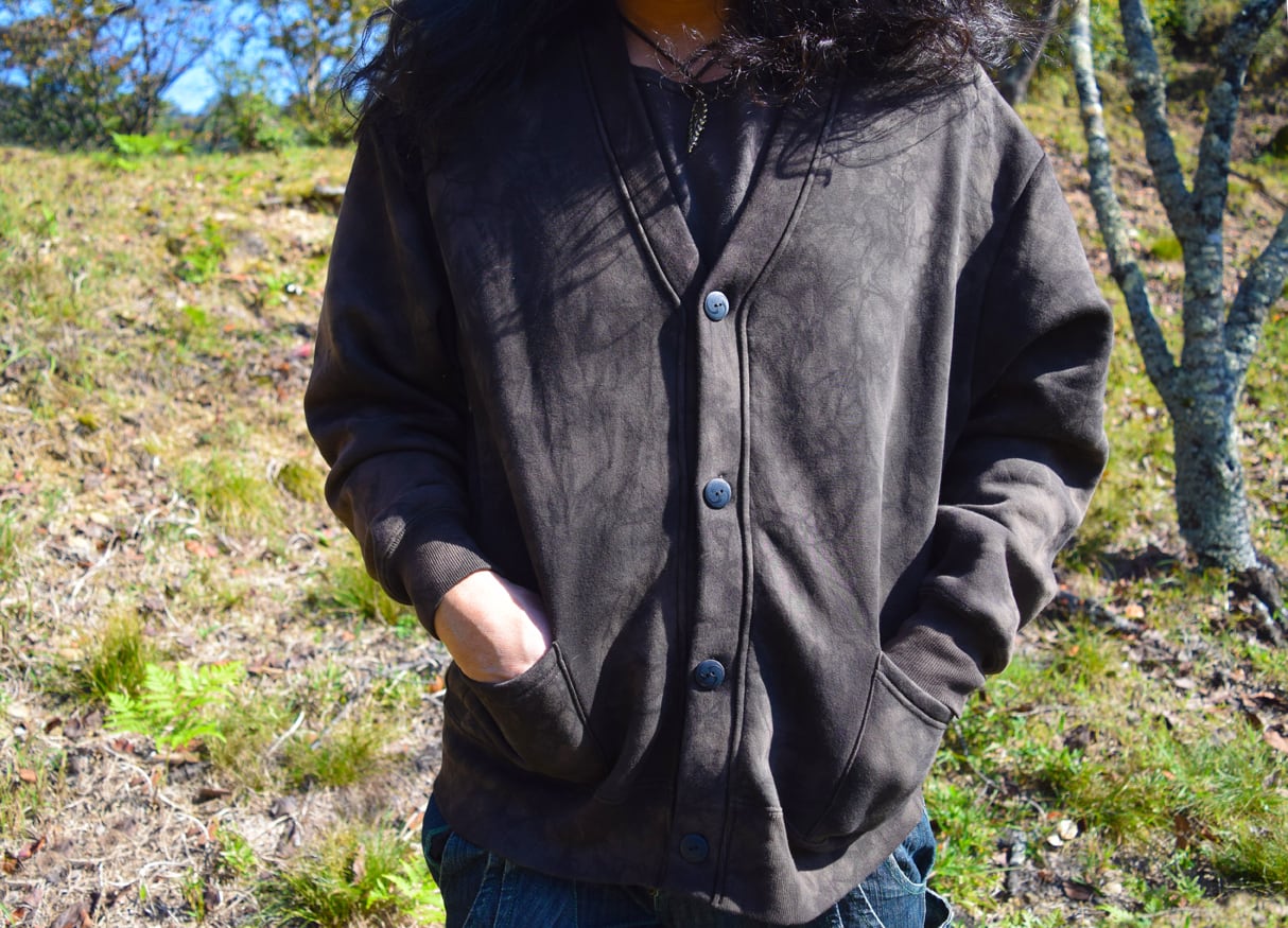 手作業で染色カスタムメイクされたカーディガン。細部に神宿る事を意識し、タイダイ模様は穏やかに浸透しています。