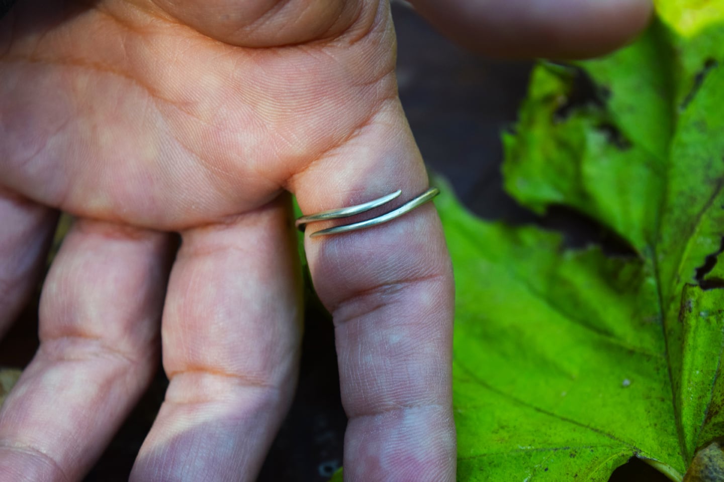 フリーサイズにて様々な指に絡みます。指で回転させ、どの視点でも美しいラインを追いました。